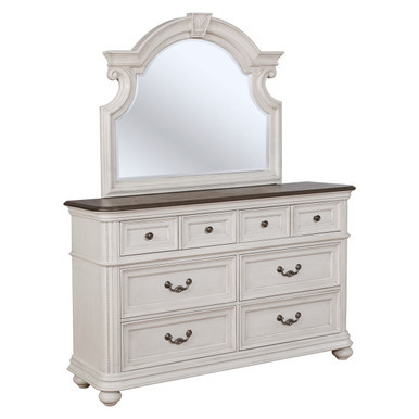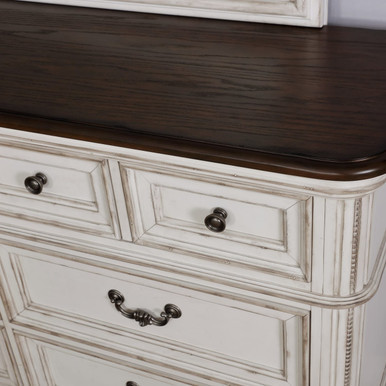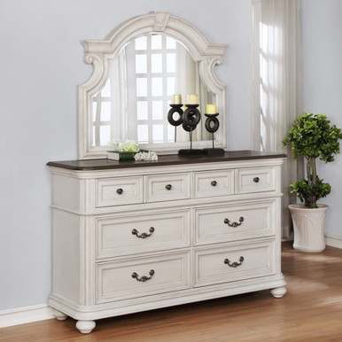 As for the dresser, its English dovetail drawers with ball-bearing glides make it easy to access clothes, blankets, and more. Also, there’s plenty of room on its surface to display framed photos, keep jewelry handy, or add some meaningful decorations. Finally, the arched mirror with beveled glass offers functionally, too. It lets you check your outfit when going out in the morning, your teeth before a night out, and any other time. Combine with other pieces in the collection for a complete room makeover!